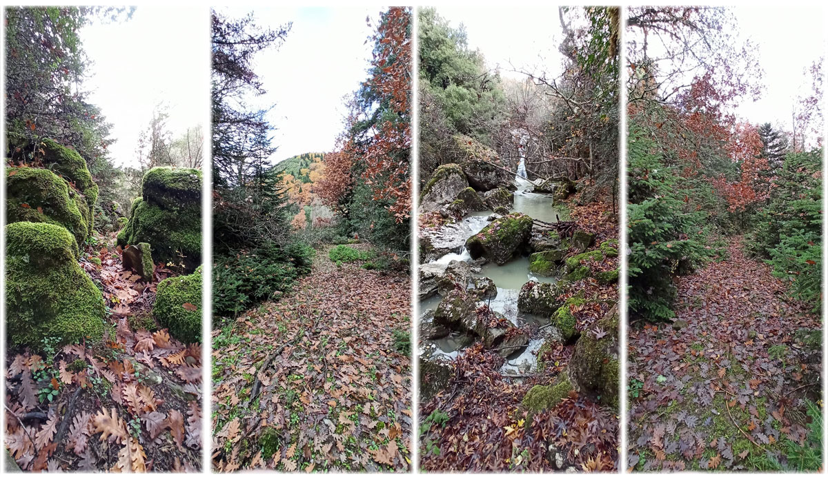 Οι δύο δρόμοι συναντιούνται σε αγροτικό δρόμο, και με αριστερή κατεύθυνση έχει κατηφορική κλήση προς τους πρόποδες του λόφου 'Στμόκ'. Περνώντας το πρώτο ρέμα, ανηφορίζουμε με το νερό στα δεξιά μας και πάμε προς τον καταρράκτη της Στηνίας. Το χειμώνα που το ρέμα είναι αρκετά γεμάτο, σχηματίζει μικρές λεκάνες νερού.