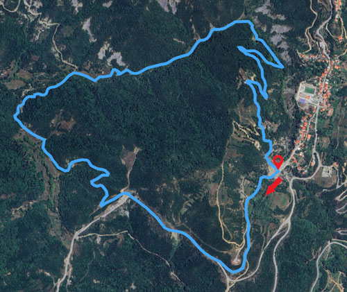 Περνάμε ξανά το ρέμα και συνεχίζουμε δεξιά όπου κυκλικά και με ζιγκ-ζαγκ περνάμε μέσα από το ελατοδάσος του λόφου. Μετά από το δυσκολότερο κομμάτι της ανάβασης, βλέπουμε στο βάθος την Βούλπη. Συνεχίζουμε και φτάνουμε στο σημείο που ξεκινήσαμε.